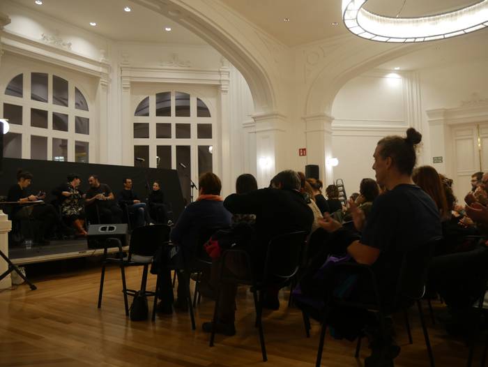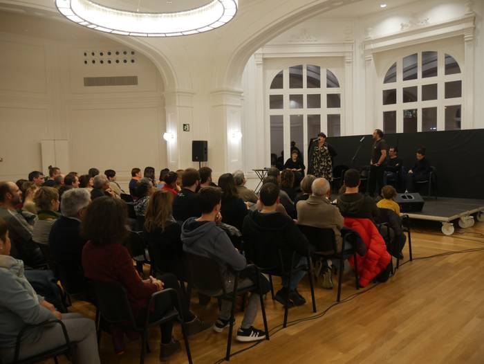 Bertso saioa egon zen atzo iluntzean Laudioko Lamuza parkeko Kasinoan, udalak Euskararen Nazioarteko Eguna dela eta antolatutako egitarauaren barruan. Onintza Enbeita, Miren Amuriza, Igor Elortza eta Aitor Sarriegi egon ziren bertsotan eta Izar Mendiguren gai jartzaile moduan.