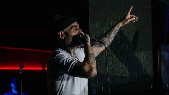 Oier Velezek abesti sorta berria taularatu zuen Sorgin tabernan. Lokala gainezka zegoen eta adin anitzeko publikoak betetzen zuen. Batzutan bakarka, beste batzuetan musikarien babesarekin, laudioarrak erakutsi zuen trantsizio oso naturala gauzatu duela hardcorearen oihu bortitzetatik hip hopera.