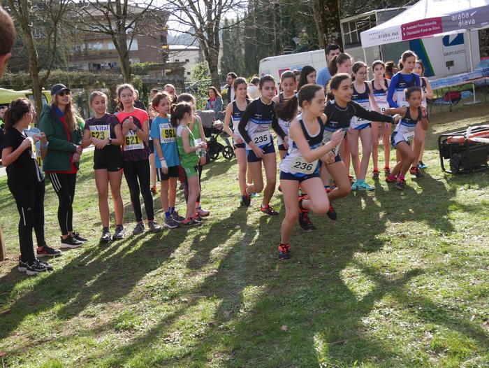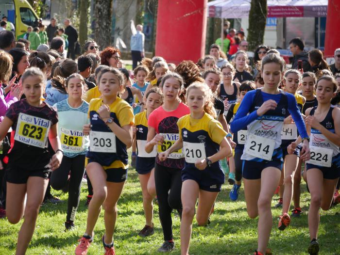 Arabako dozenaka umek parte hartu dute gaur goizean Laudioko Eskola Krosaren XIV. edizioan. Goiz eguzkitsu eta epelean, emakumezko infantilek egin dute lehenengo lasterketa, eta kategoria bereko gizonezkoak lehiatu dira jarraian. Probako bi lasterketa luzeenak izan dira horiek. Ondoren, alebin kategoriako neska eta mutilak abiatu dira, eta eguerdia igarota iritsi da benjaminen momentua. Dena den, lasterketa guztiak amaitzean, 2012an eta beranduago jaiotako umeentzako proba labur bat ere egon da.