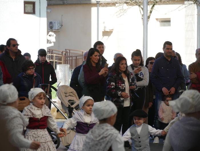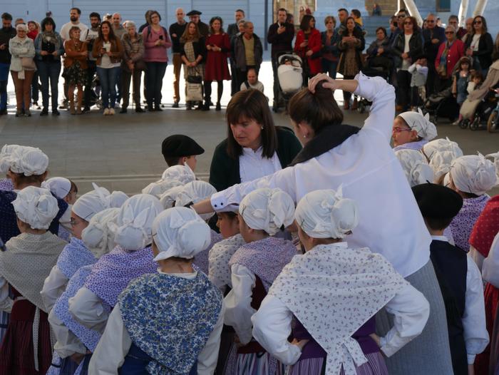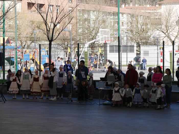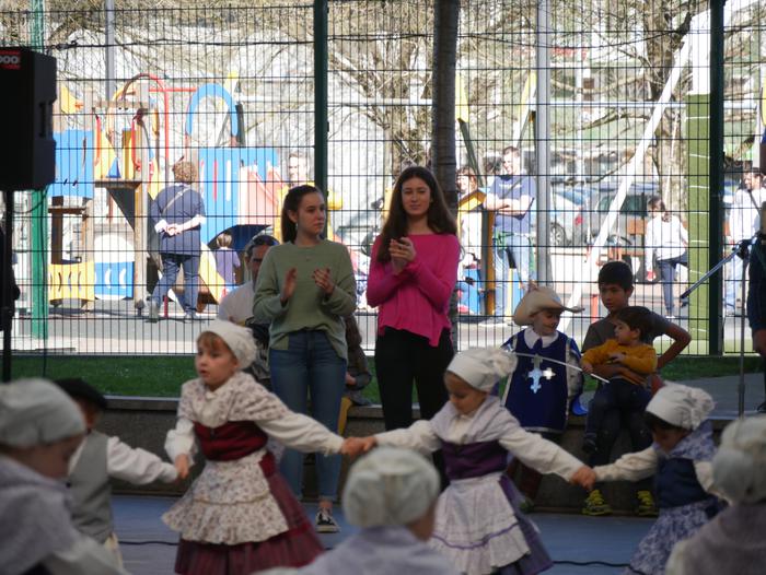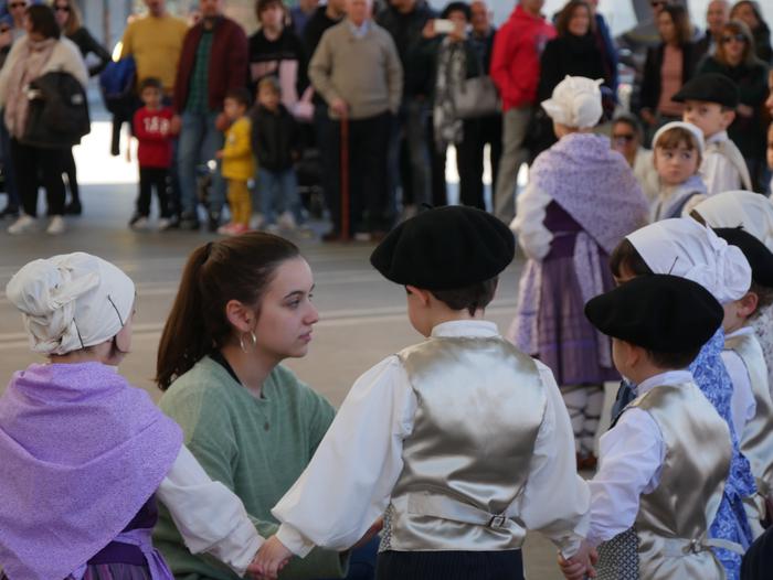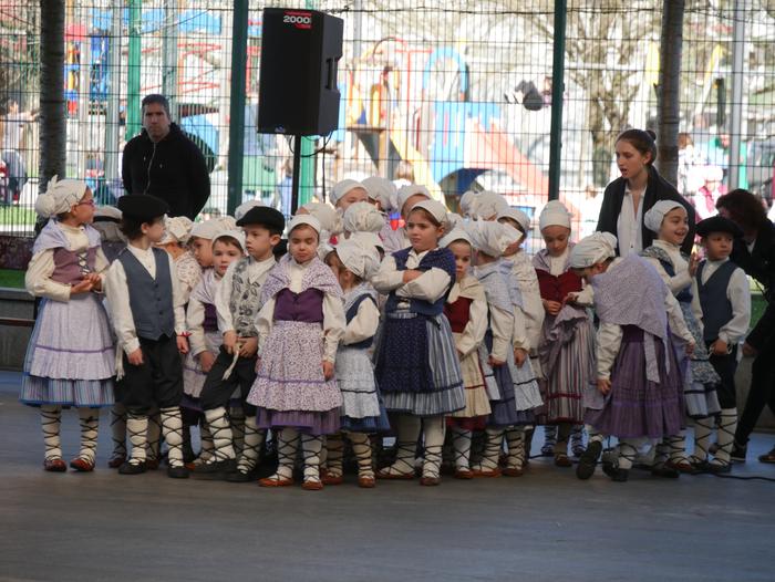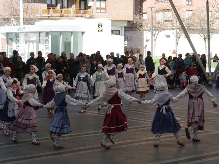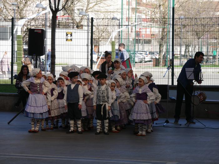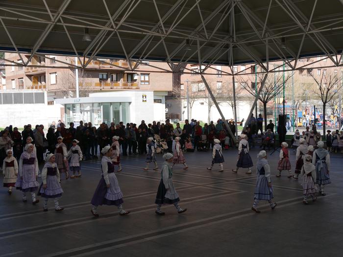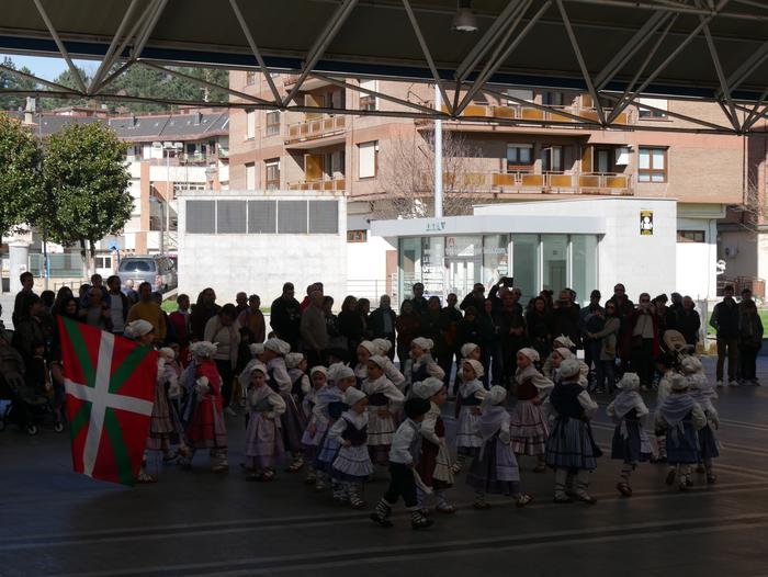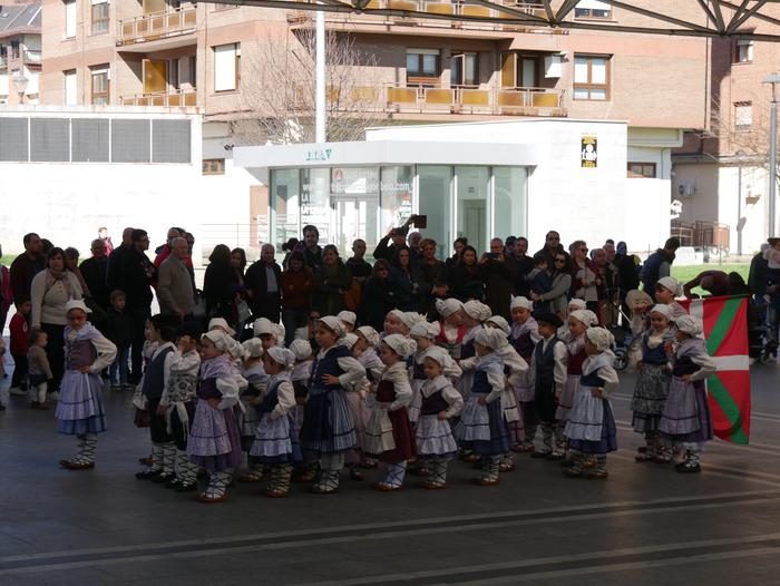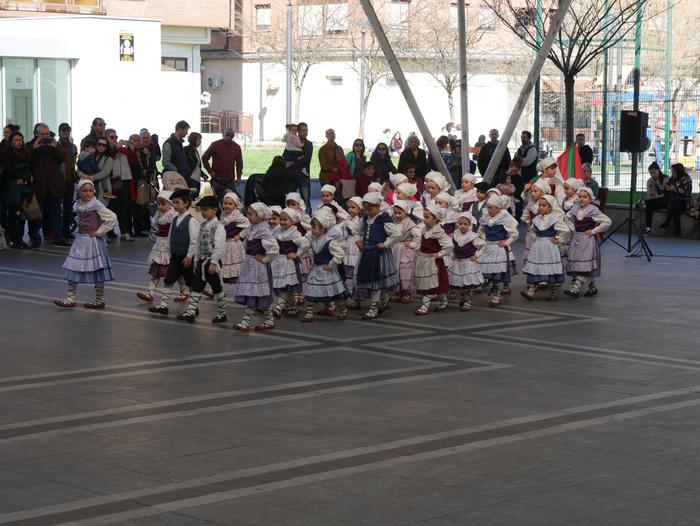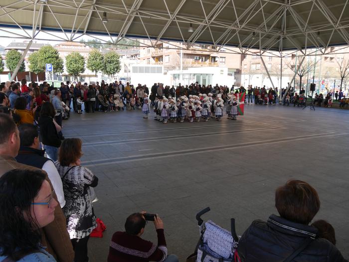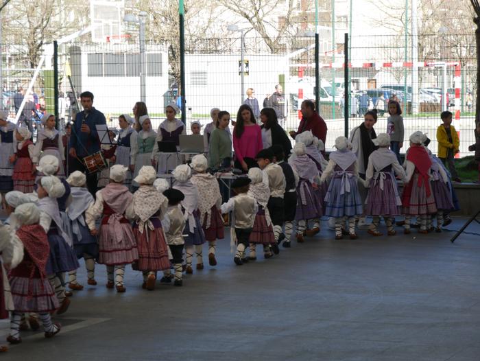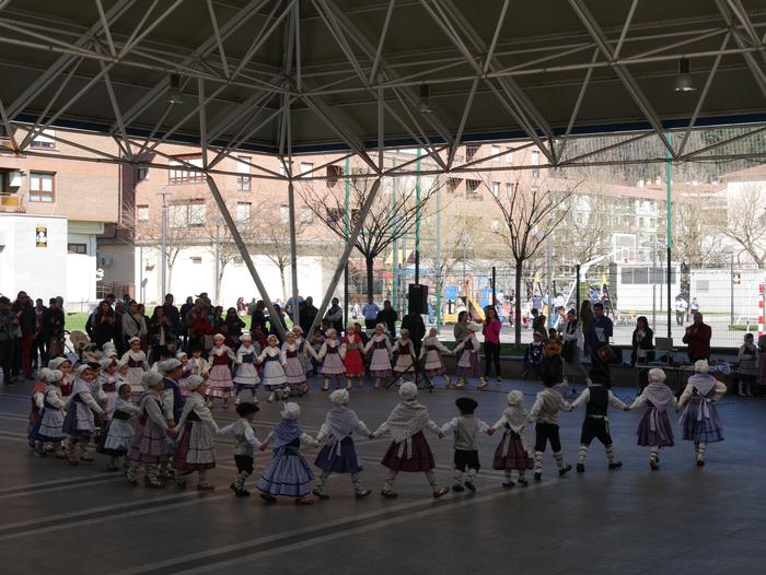 Itxarkundia Dantza Taldeko kide gazteenak elkartu ziren igandean Aldai plazan eta ehunka lagun bertaratu ziren euren erakustaldia ikustera. Kasu batzuetan, euren lehen dantzaldi publikoa zen.
