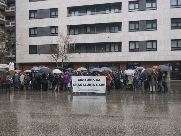 Harago joan dira gaur Laudioko Mugimendu Feministako kideak. Ez dira mugatu duela astebete herrian jazotako eraso matxista salatzera. Kasu gehiago jarri dituzte mahai gainean. "Etengabean ari gara ikusten erasoak gure herrian: jaien testuinguruan, lan esparruetan, osasun zitetan, herriko kirol taldeetan, eraso transfoboak herriko tabernetako komunetan... eta ez gaude onartzeko prest", aldarrikatu dute gaur eguerdian Alberto Acero plazan eginiko elkarretaratzean.