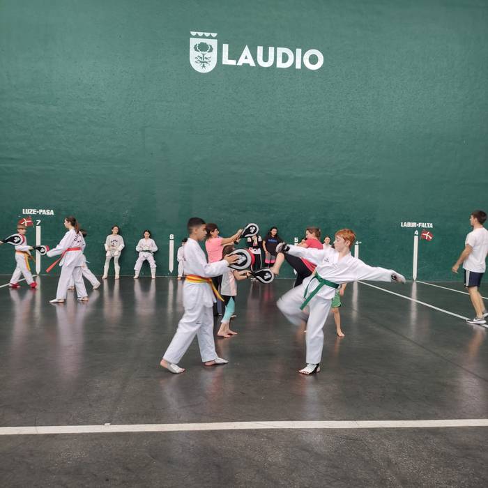 Geldiezinak gara egitasmoa antolatu dute Laudion hilabete osoan zehar, Martxoaren 8ko egitarauaren barruan. Aretaren txanda heldu zen igandean. Pilota, bola jokoa eta taekwondoa izan ziren landu zituzten diziplinak. Ekimenaren helburuetako bat da herritar ororen artean kirola sustatzea, bereziki emakumeen kasuan.