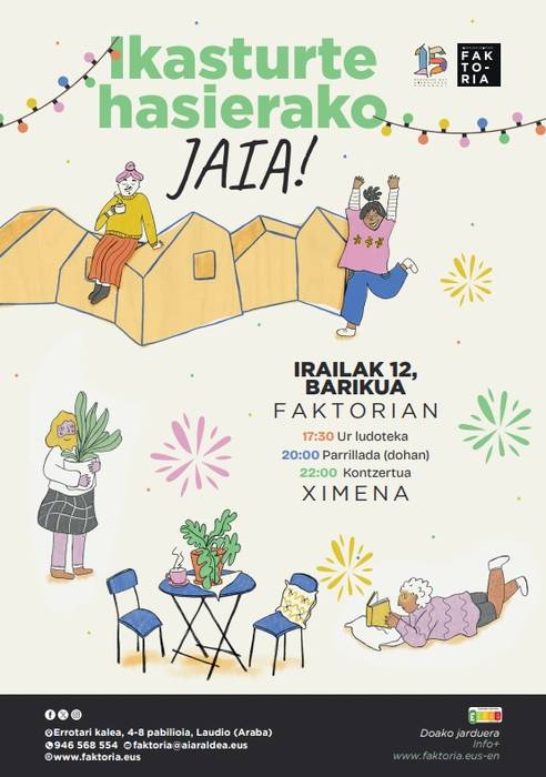 Horrez gain, "Ikasturte hasierako jaia" egingo dute ostiralean, arratsalde osoko egitarauarekin. 17:30ean hasiko dira haurrentzako ur-jolasekin, 20:00etan parrillada eskainiko dute eta 22:00etan musika eskaintza egongo da, Ximenaren eskutik.