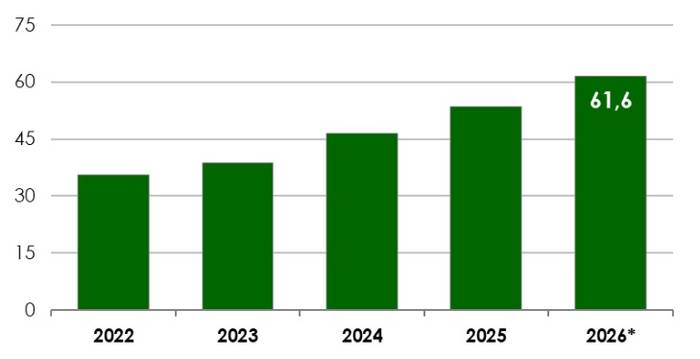 2022tik hona urtez urte handituz joan da akziodunei banatutako diru kopurua, enpresak berak zabaldutako grafiko honetan ikusi daitekeenez: