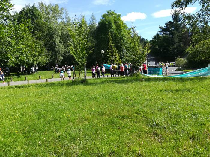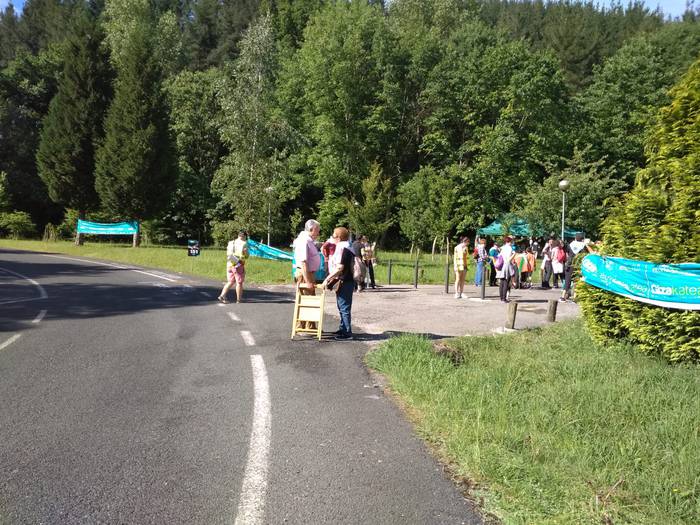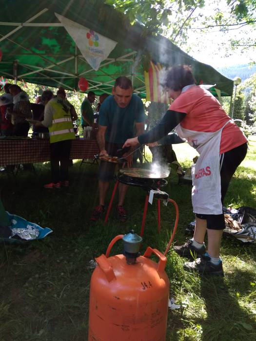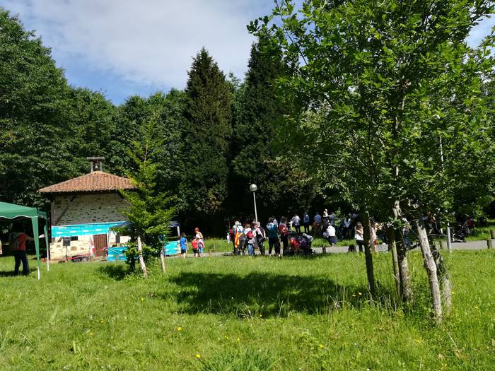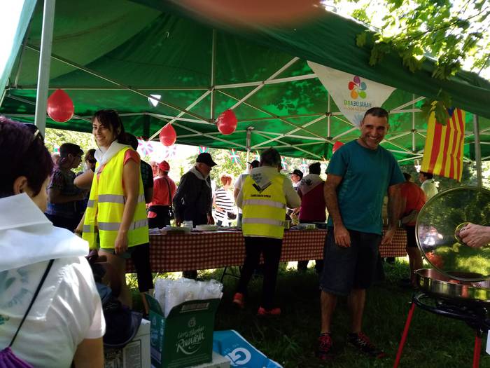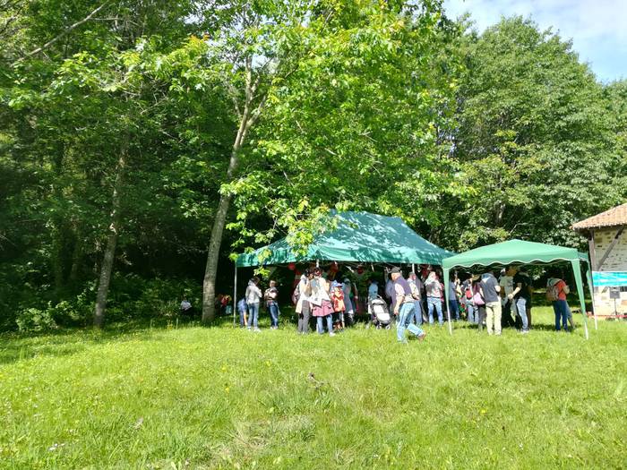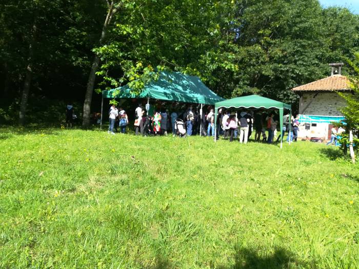 Luiaondoko irteeran egon dira okondoarrak. Txosna mugikorra ipini dute. Trikitilariek girotu dute goiza.