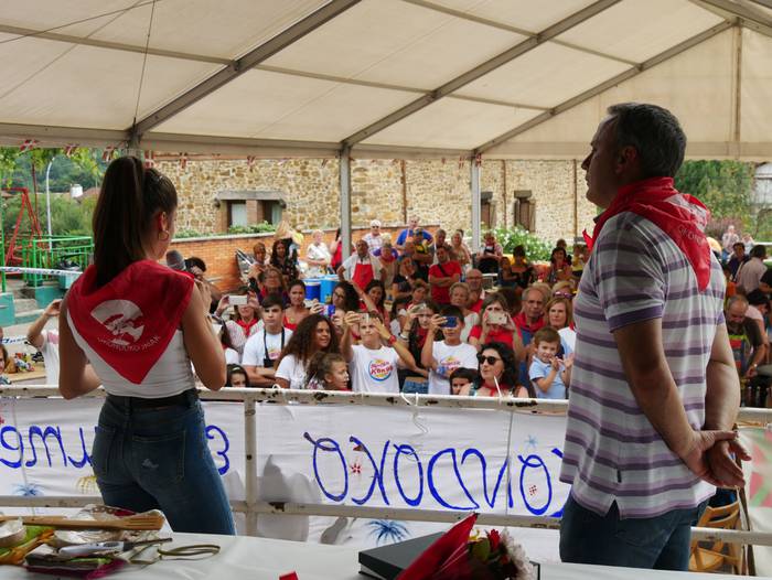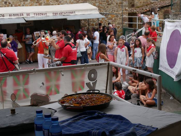 13:00etan irakurri du pregoia Maddi Otaola kirolariak. Emakumeen lorpenak eta berdintasuna aldarrikatu ditu ekitaldian. Paella txapelketa izan da txupina jaurti aurretik nagusi.