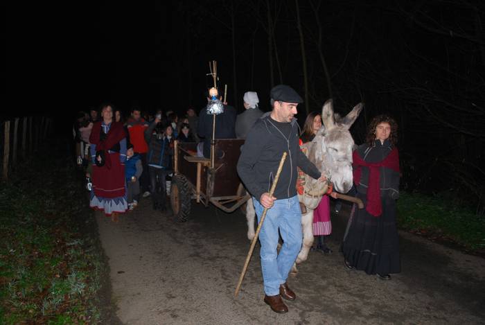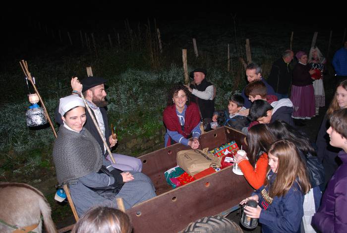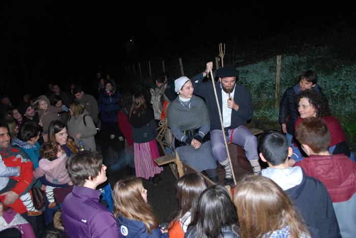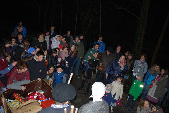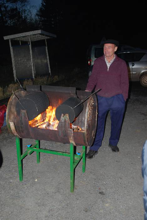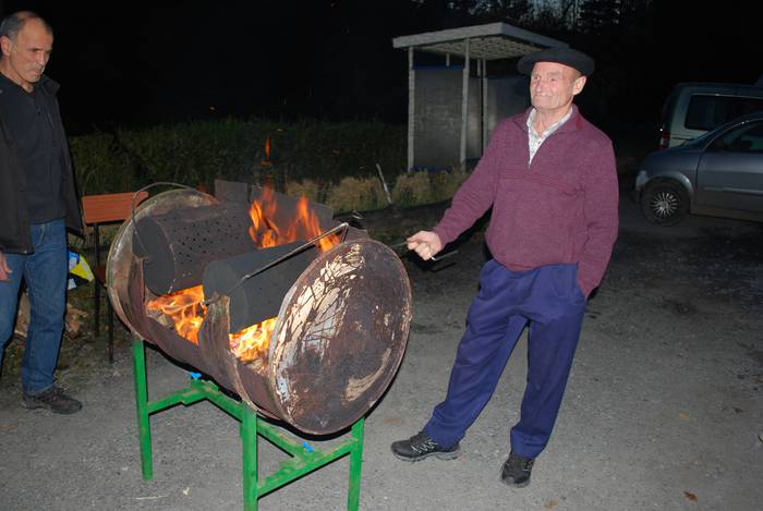 Gaztaina erreak, ardoa eta "amama Dariaren eran egindako gaztaina trufak" dastatzeko aukera izan zuten Okondon ikazkinekin batera.
