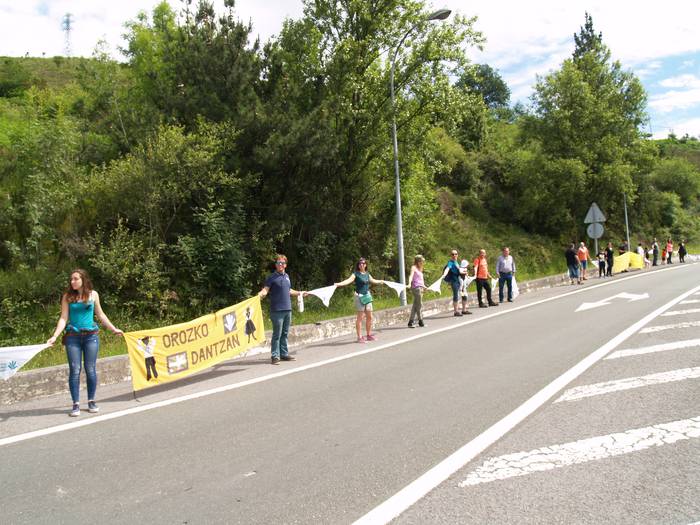 Orozkoko hainbat lagunek jo dute Arakaldo eta Arrankudiaga lotzen duen errepidera, giza katea osatzeko.