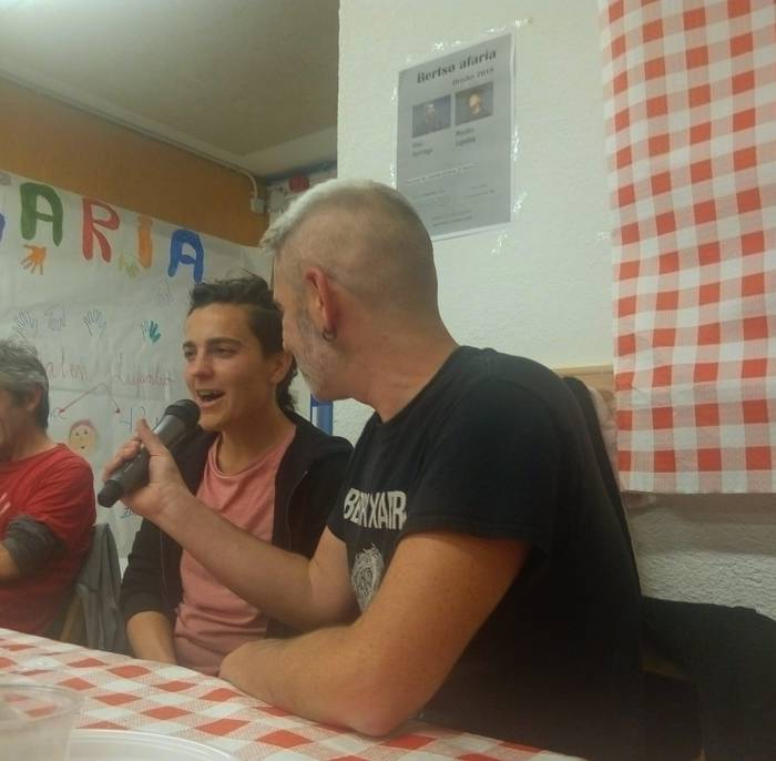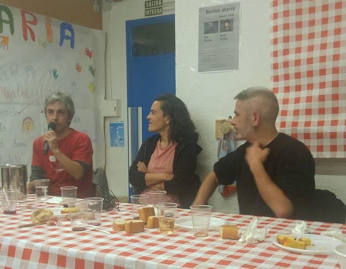 Bertso afaria egin zuten ostiralean Orozkon, Berbaz Kultur Elkarteak antolatuta. Dozenaka lagun bildu ziren mahaien bueltan, Maialen Lujanbiok eta Unai Iturriaga bertsolari ospetsuek girotutako otorduaz gozatzeko.