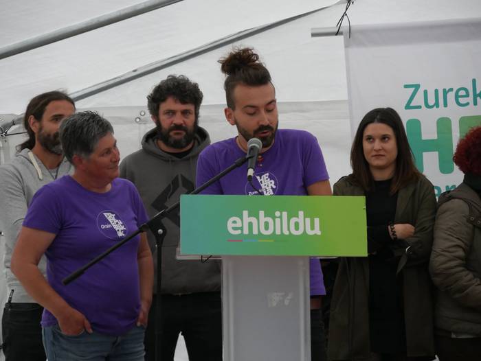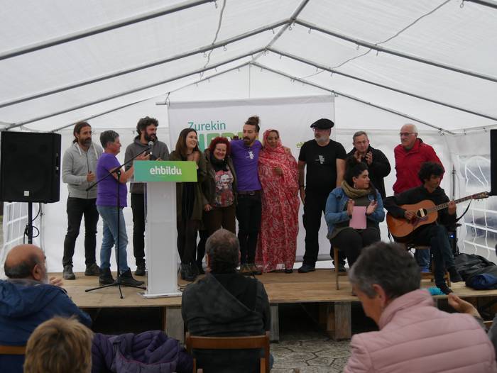 Peio Urizar izan da hitza hartzen lehena. “Ohorea da zerrendakideekin proiektua konpartitzea. Euskal Herriak behar duen aldaketa bermatzeko proiektu bakarra da EH Bildu”, azpimarratu du. Bizitza duinerako eskubideak izateko “erregimen propioa” aldarrikatu du, eta akordioez eta alderdien borondateez aritu da: “Maroto kanporatzeko EAJri eman genion botoa inolako onurarik gabe, nahiko nuke jakin ea eurek aukera hori emango liguketen”. Biktimen aitortzaz, egoera sozioekonomikoaz eta eskubideak bermatzeko beharraz ere hitz egin du: “Egungo zikloa agortzen ari da, 40 urte eta gero. EAJ eta PSE-EE ez dira etorkizuna herri honentzat, ez dute nazio proiekturik eta. Guk Euskal Herria dugu helburu bezala, eta horretarako, zalantzarik gabe, EH Bildu izan behar da tresna”. Kanpainaren azken eguna izanik, jeltzaleei kritikaren politika baliatzea leporatu die, eta PPri ETAren etengabeko erabilera: “EH Bilduk elkarbizitza eta bakegintzaren aldeko sekulako lana egin du. Inkesta guztiek diote igoko garela, eta oso nabaria da alderdien urduritasuna Nafarroako esparruan, Gipuzkoan eta Gasteizen”.