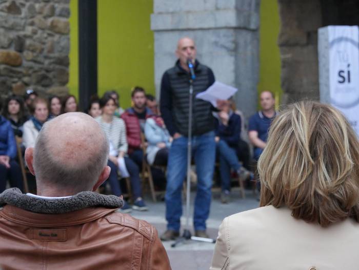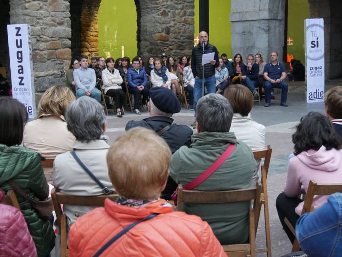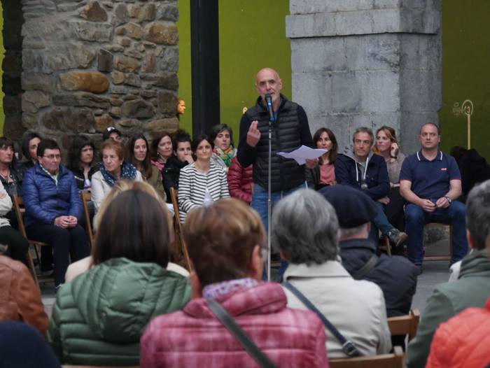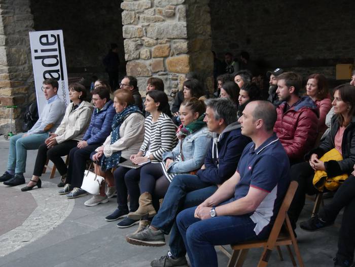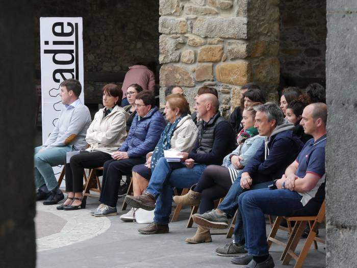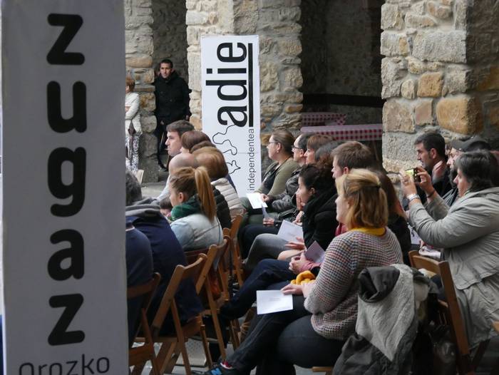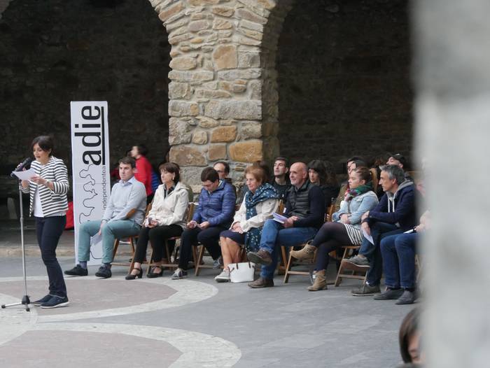 Adieren sorrera eta helburuak gogora ekarriz hasi du ekitaldia Pedro Mari Intxaurraga zerrendaburuak: "Adie ez da alderdi politikoa, plataforma independentea da: ezberdin pentsatzen dugu, eta hor dago gure aberastasuna". Euren lan proposamenetik gardentasuna, parte hartzea eta "kudeaketa zintzoa" nabarmendu ditu alkategaiak: "Herri osoak jakin behar du non eta zertan gastatzen den dirua. Egiten dugunagatik ezagutzen gaituzte". Zentzu horretan, duela 8 urte Adie sortu zutenei eskerrak eman dizkie, "lekukoa baino gehiago hartuko dugu, atzoko utopia errealitatea da gaur".