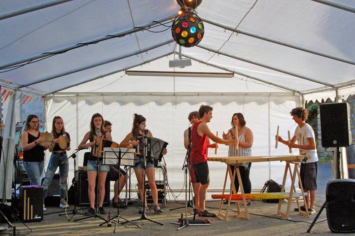 Zopilotes musika taldekoak ere bertan ziren bazkalordurako eta arratsalde osoa bertakoekin solasaldian pasa ostean, sekulako kontzertua eskaini zuten behin oholtzara igota, Orozko eta inguruko herrietako jendea erakarriz. Zaloa topera bete zan. Sekula ez dugu halakorik bizi izan auzoan!