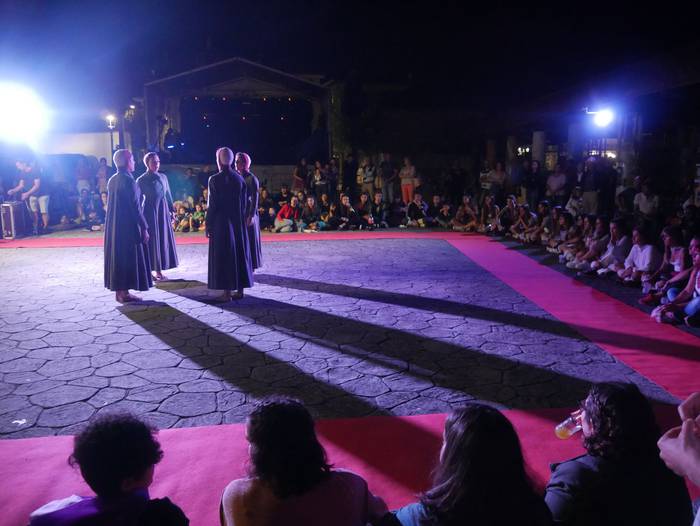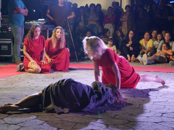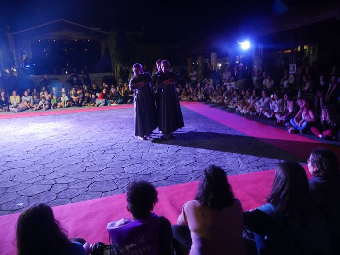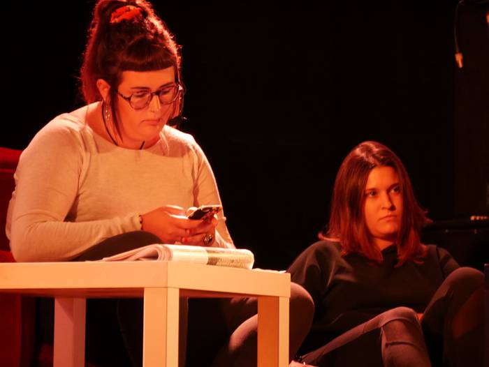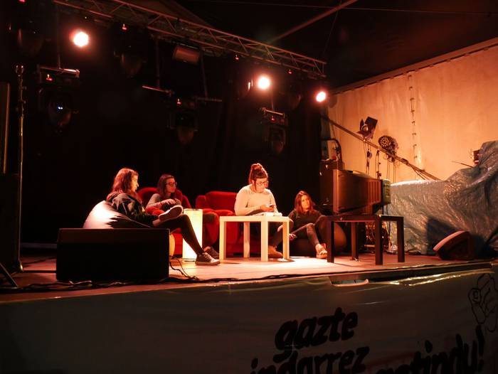 Ekitaldia laburra bezain mamitsua egin zuten. Lehen zatian antzerkia baliatu zuten neska gazteek pairatzen dituzten egoera matxistak bistaratzeko. Hala, maitasun, lan eta jendarte alorretan gertatzen diren zapalkuntzak utzi zituzten agerian: kontrola eta jazarpena, gutxiespenak eta beste.