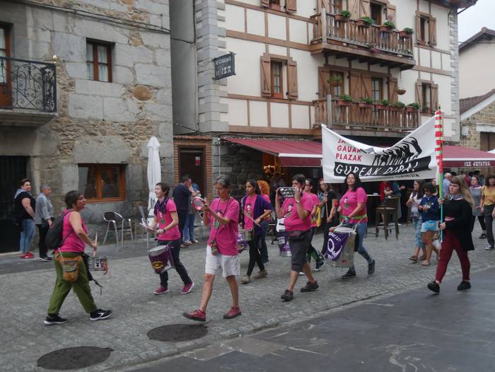 Ondoren, kideetako batek hartu zuen hitza, eta irakurketaren bidez "jaiak, kaleak eta gauak denonak dira" mezua zabaldu zuen. Izan ere, festen testuinguruan eraso ugari jazotzen dira, azpimarratu zutenez.