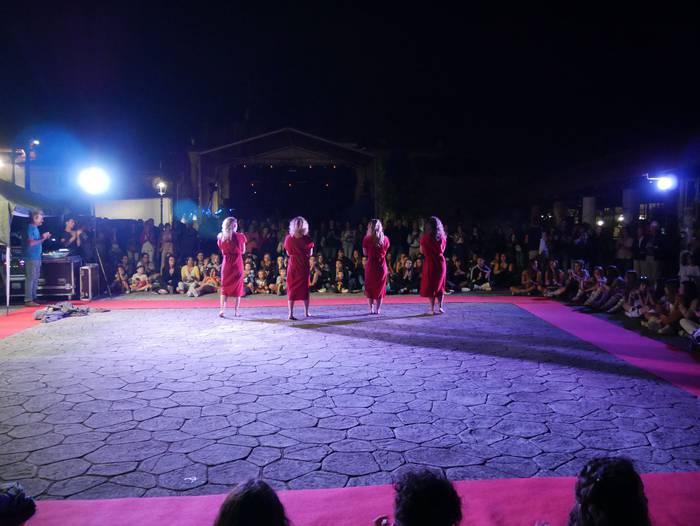 Hain zuzen, emakume sortzaileen azoka atondu zuten goizean txosnagunean. Arratsaldean, aldiz, Mamiki batukadarekin kalejira feminista osatu zuten. Ondoren, "Lau eme" dantza ikuskizuna izan zuten, eta segidan ekitaldia. Goizaldean, aldiz, Yogurinha Borova eta Las Tea Party aritu ziren giroa jartzen.