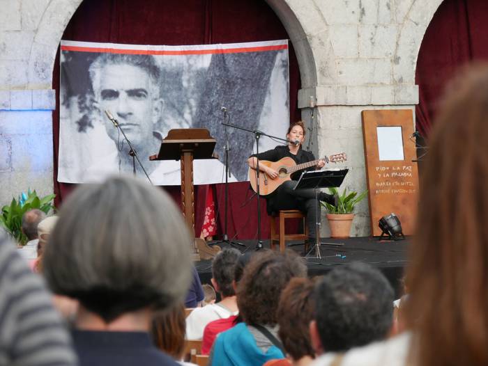 Muñoz etxean abiatu zuten ibilaldia, bertan igarotzen baitzuen uda Blas de Oterok. Ondoren, Txoperara mugitu ziren, Rafa Muntion eta Agurtzane Intxaurragaren poema musikatuak entzuteko. Izaskun Villaverderen txirula izan zuten lagun, gainera. Horrez gain, Maialen Bilbaok dantzatu zuen.