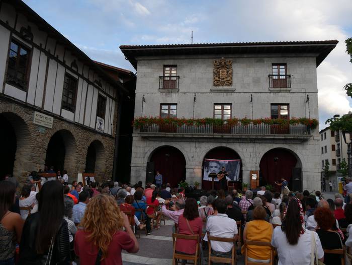 Blas de Oteroren idazluma ez da lehortu. Ez, behintzat, Orozkon. Horren adibide da atzo herriko Batasuna dantza taldearen eskutik antolatutako omenaldi ibiltaria. Duela 40 urte zendu zen poeta, eta horren aitzakiapean gogorarazi eta ezagutarazi zituzten idazleak Orozkori buruz idatzitako lanak, edota bertan izandako bizitza. Hain zuzen, bere gaztaroaren lekuko izan ziren, besteak beste, Txopera, frontoia edota plaza. Bost geldialditan ikuskizun andana eskaini zituzten.