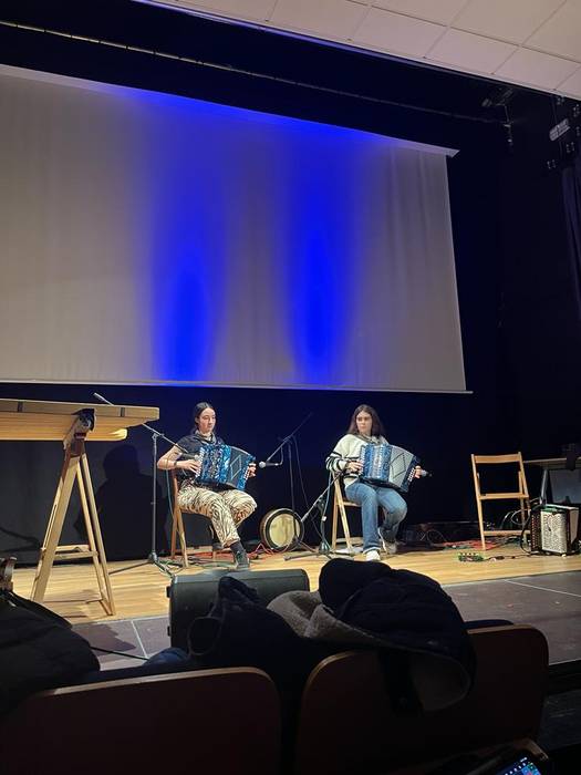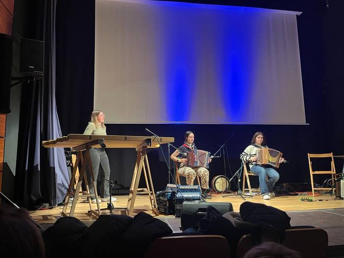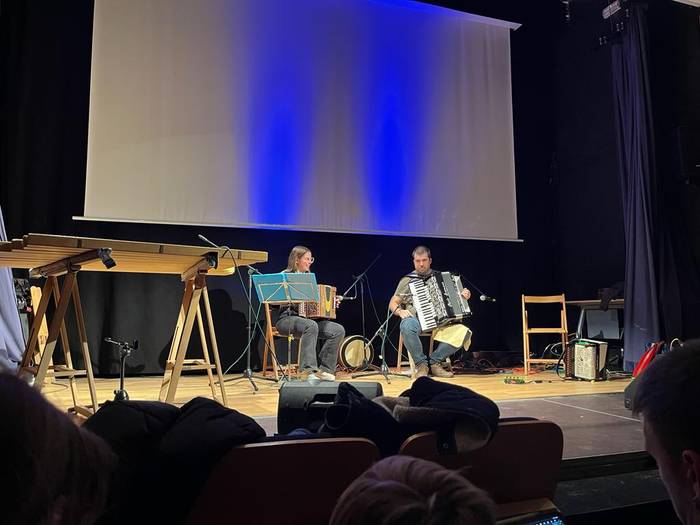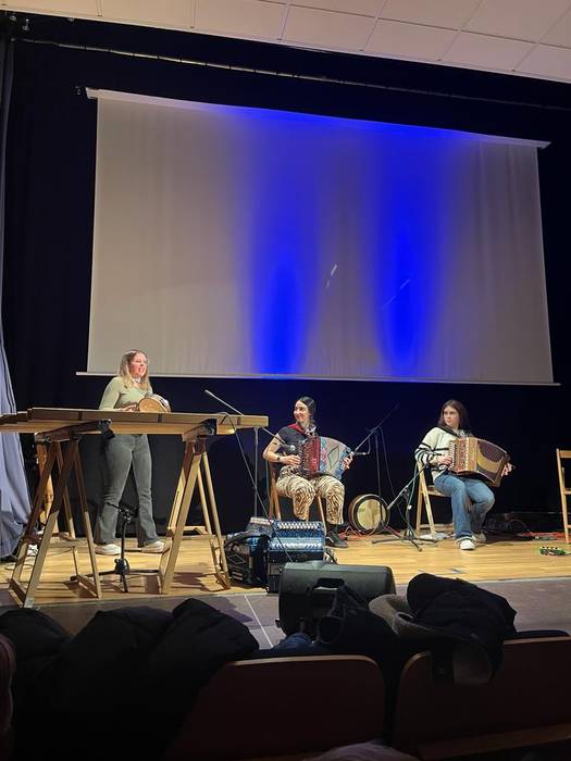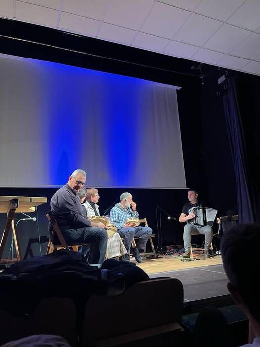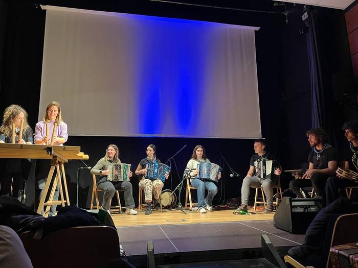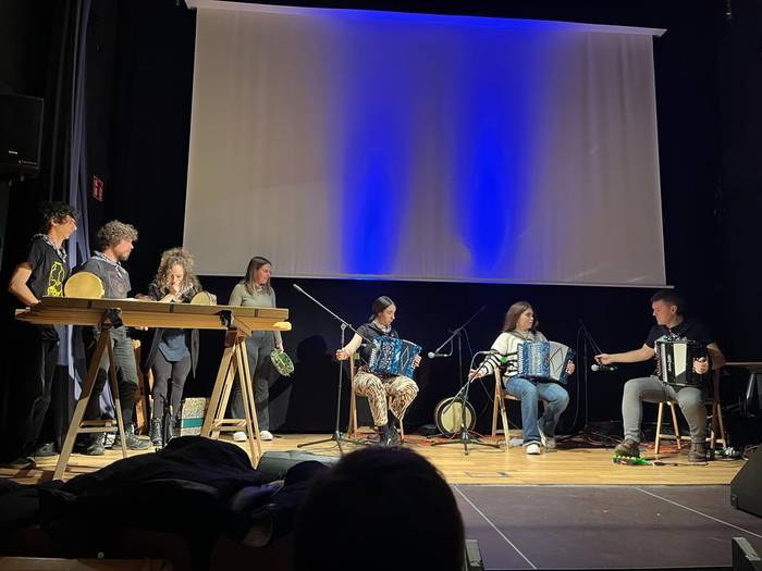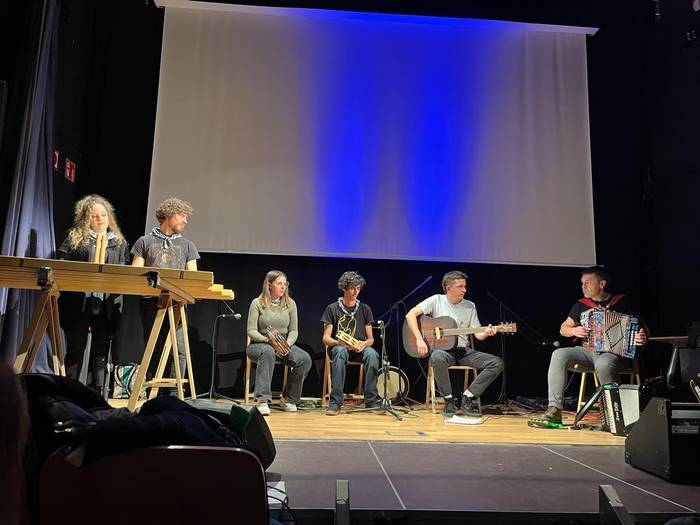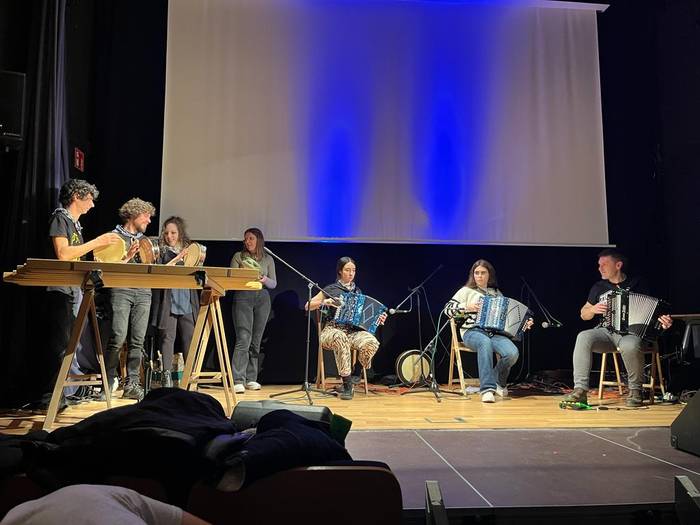 Orozkoko trikitilari eta panderojoleek Gabonetako kontzertua eskaini zuten Donibane Aretoan ostiralean eta adin ugariko musikariak bildu ziren oholtzan.