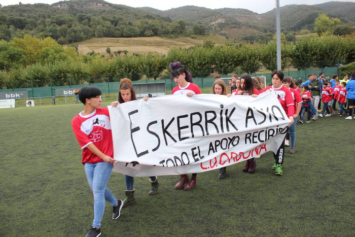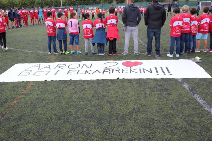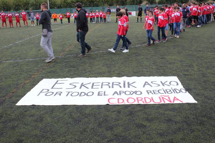 CD Orduña klubaren talde guztiek parte hartu zuten atzo Aaron Martin Guillenen omenaldian. Jokalari ohi zendua gogoan izan ez ezik, jasotako babesa ere eskertu zuten. Ekitaldi xumea egin zuten lehen taldearen partidaren aurretik. Tokikoek 3-0 irabazi zioten Ezkurdiari.