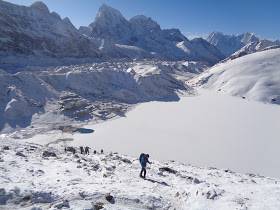 Bidaiaren lehenbiziko egunetan trekkingak burutu zituzten. Besteak beste, Nambchen (3.440m) igaro zuten gaua, 4.000 metrora igotzeko gero. "Oso berriztuta dago Namche, eta beti bezain atsegin", aitortu du Tasio Martinek. Eguraldiari dagokionez, ordea, ez dute baldintzarik onena topatu: "Elur asko dago. Hori dela eta, aklimatazio trekkina egokitu dugu, Renjo La ekiditu eta zuzenean Gokyora abiatuz".