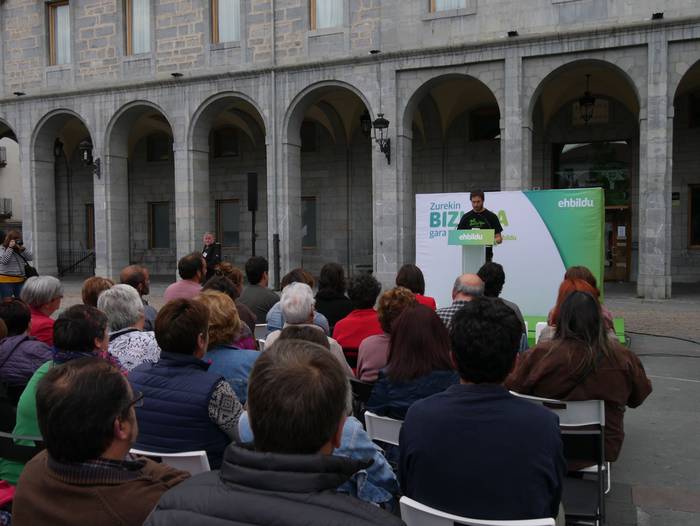 Zigor Isuskiza Batzar Nagusietako EH Bilduko kideak egin zuen lehen hitzartzea. Emaitzak hobetzeko esperantza zabaldu zuen: "EH Bildurekin herritarrok gardentasun eta zintzotasunean irabazten dugu, baina batez ere, duintasunean". Garraio eta enplegu sistema duinak aldarrikatu zituen biltzarkideak: "Batzuk urduri daude. EH Bilduk proposatu zuen Bizkaiko Batzar Nagusietan Nerbioiko parke linealeko bidegorriaren proiektua. EAJk ezezkoa eman zuen, eta hauteskundeen atarian iragarri dute proiektua. Berdina egin dute AP68ko ordainsariekin".