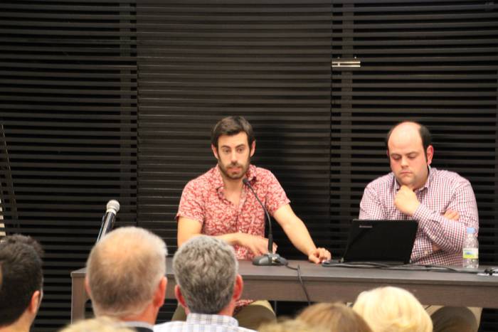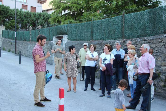Aaron Diego Escauriaza artistak hartu du bere gain Urduñan muralak margotzeko ardura. Atzo hitzaldia eta ibilaldi txikia eskaini zituen azaltzeko zertan oinarritu zen hormak atontzeko. Jende ugarik jarraitu zituen arreta handiz bere argipenak.