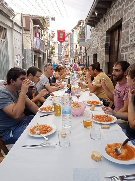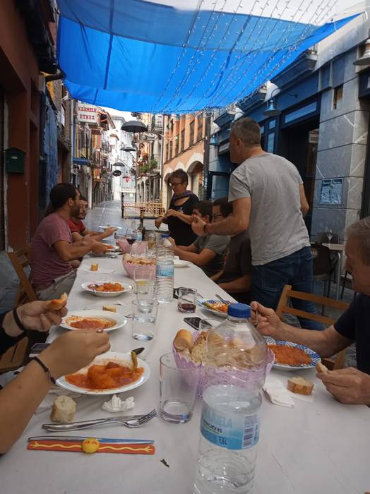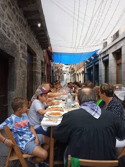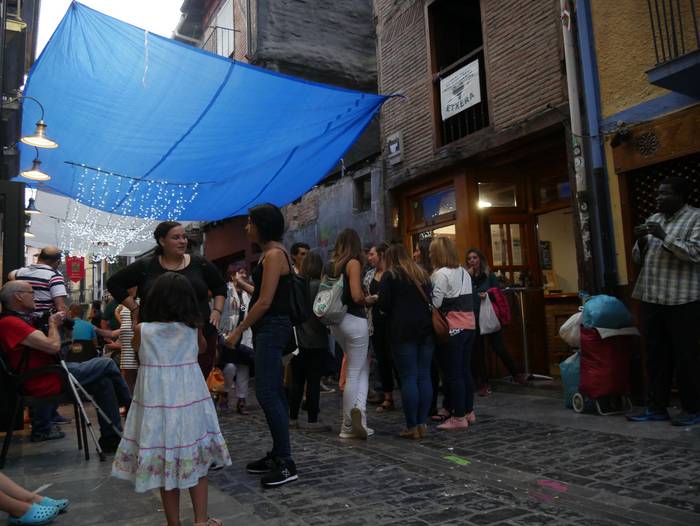 Herenegunetik festetan murgilduta daude Kale Barrian. Atzo izan zuten egun handia: herri bazkaria eta Morrillonaren jaitsiera egon ziren, besteak beste.