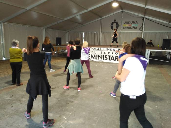 Zunba saioa egin dute gero plazako karpan. Tupper bazkariarekin, karaokearekin eta tribial feministarekin eman diote amaiera egitarauari.