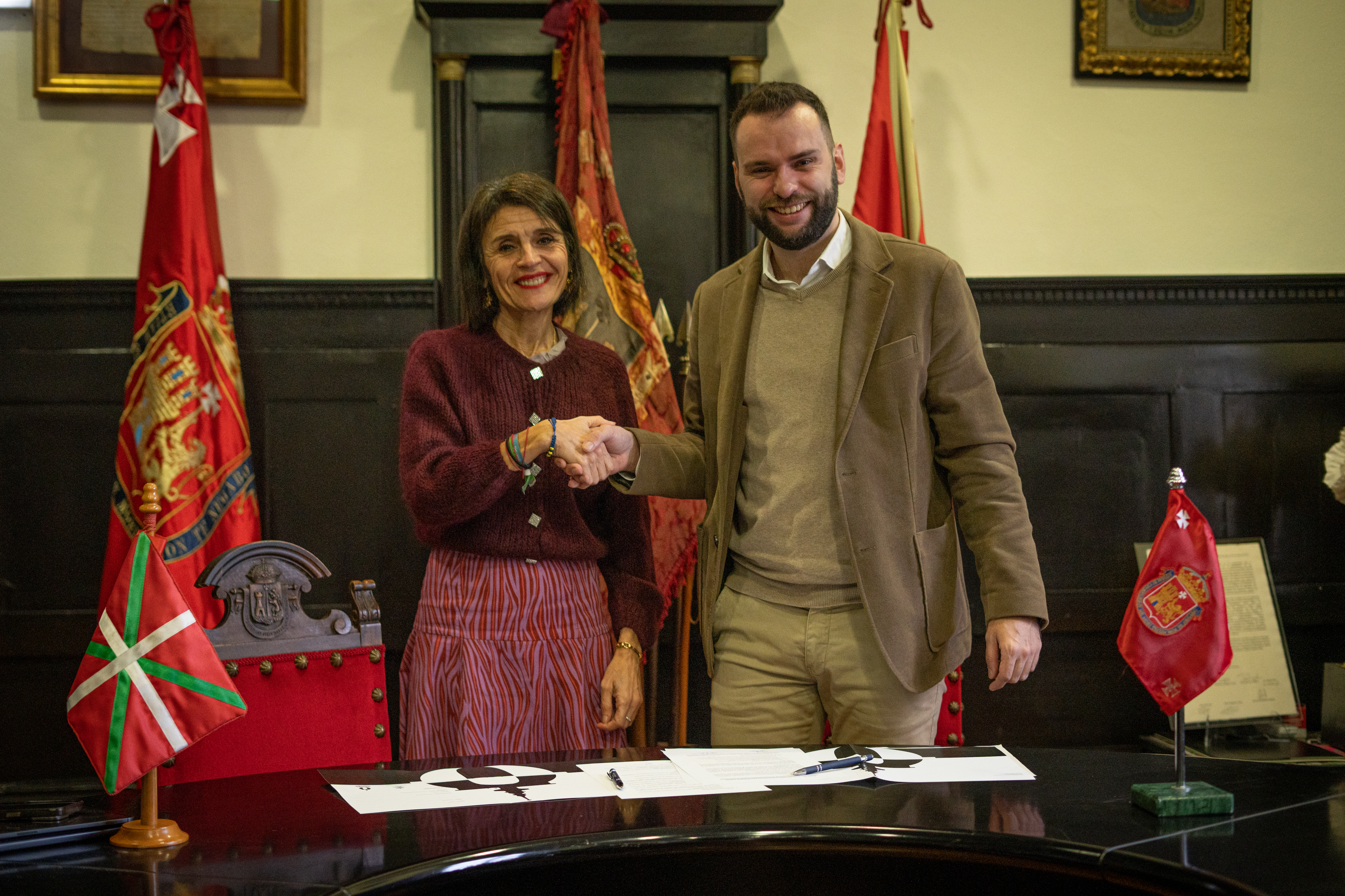 Adrian Lopez Eusko Jaurlaritzako gazteria eta Emantzipaziorako zuzendariak eta Uxue Mendibil Urduñako zinegotziak azaldu dituzte hitzarmenaren nondik norakoak: